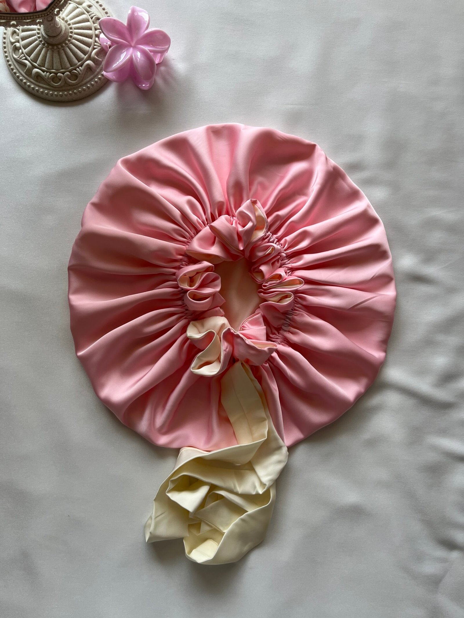 قبعة شعر حريرية وردية اللون