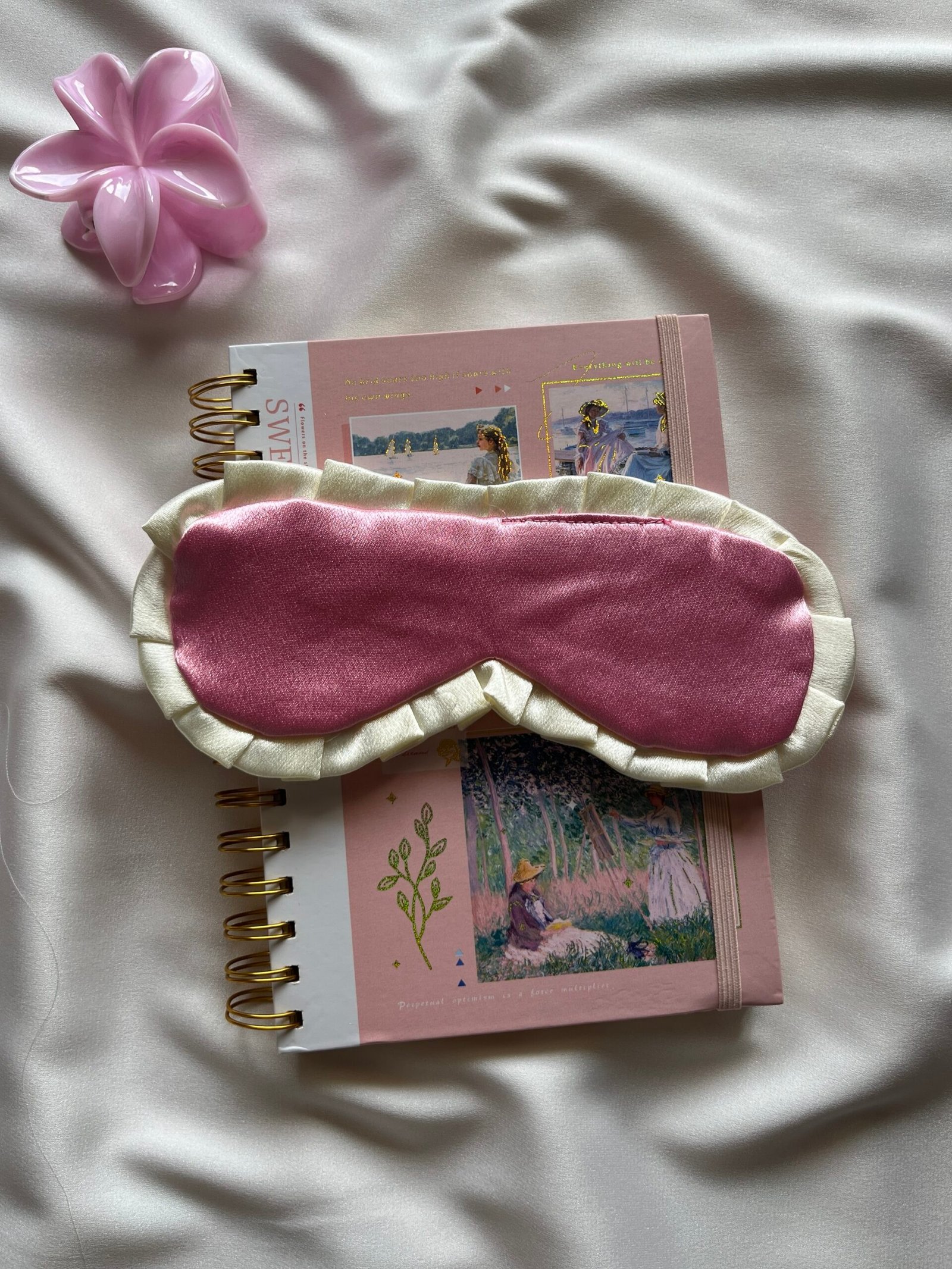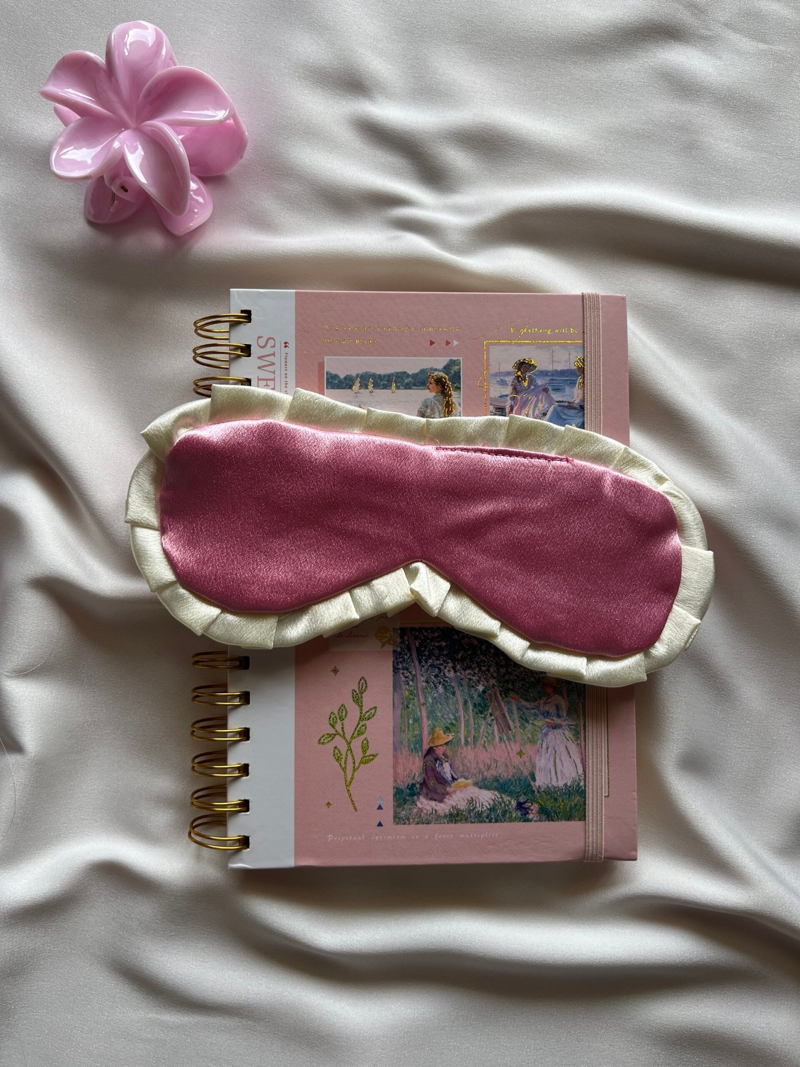 جزء من مجموعتنا “بينك ريفيري”، قناع نوم من الساتان باللون الوردي الفاتح، مبطن بكشكشة كريمية اللون لمزيد من الراحة ولمسة نهائية أنيقة وحالمة.