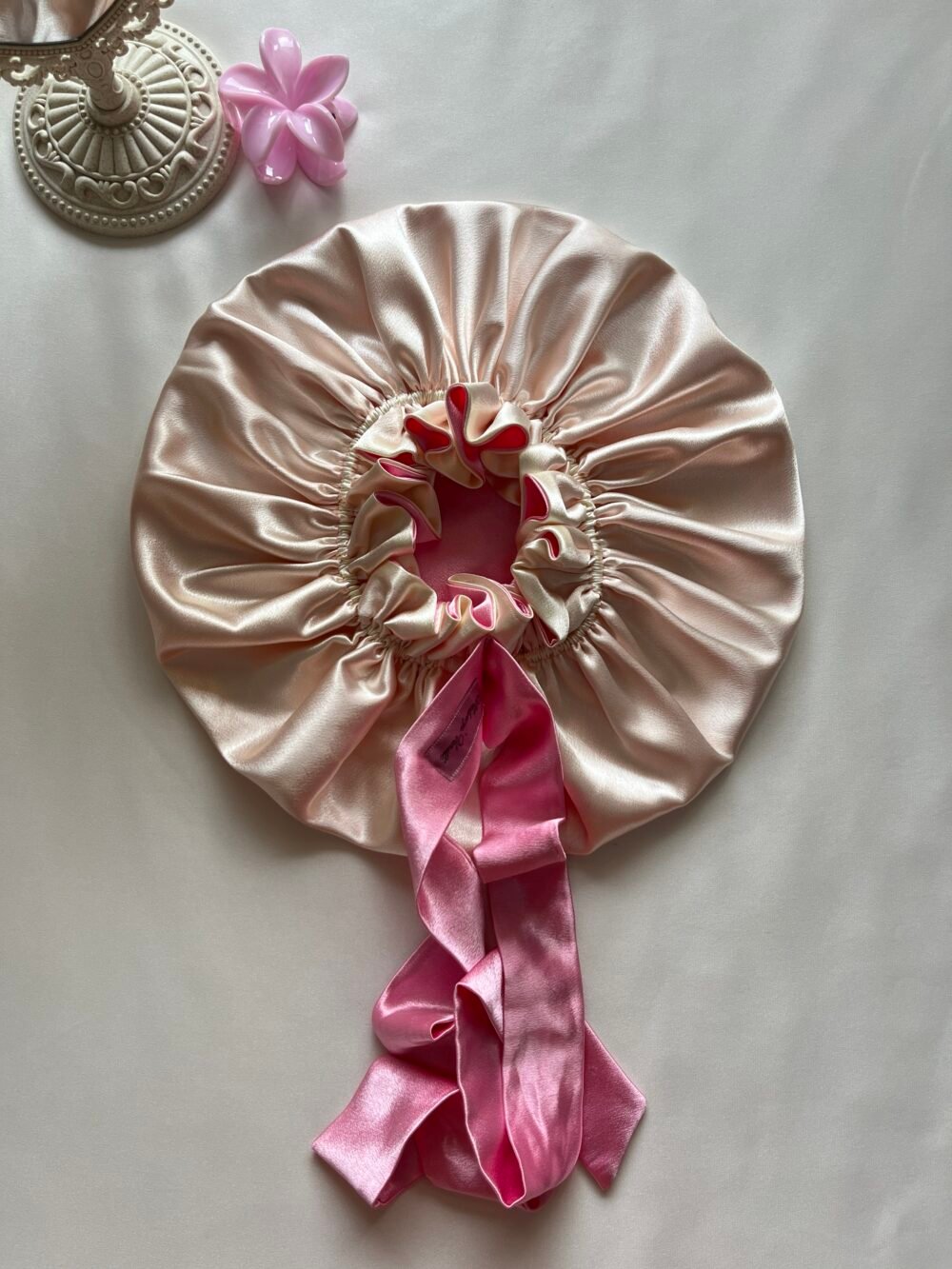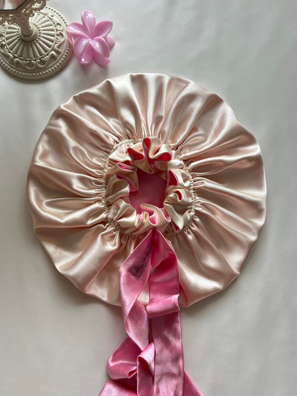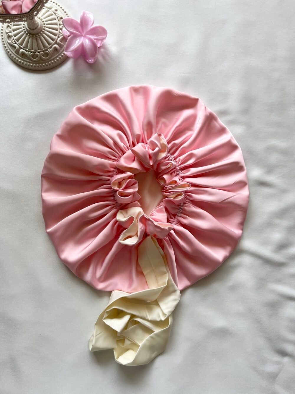 Soft satin bonnet designed to protect your hair, reduce friction, and keep your nights comfortable and beautiful